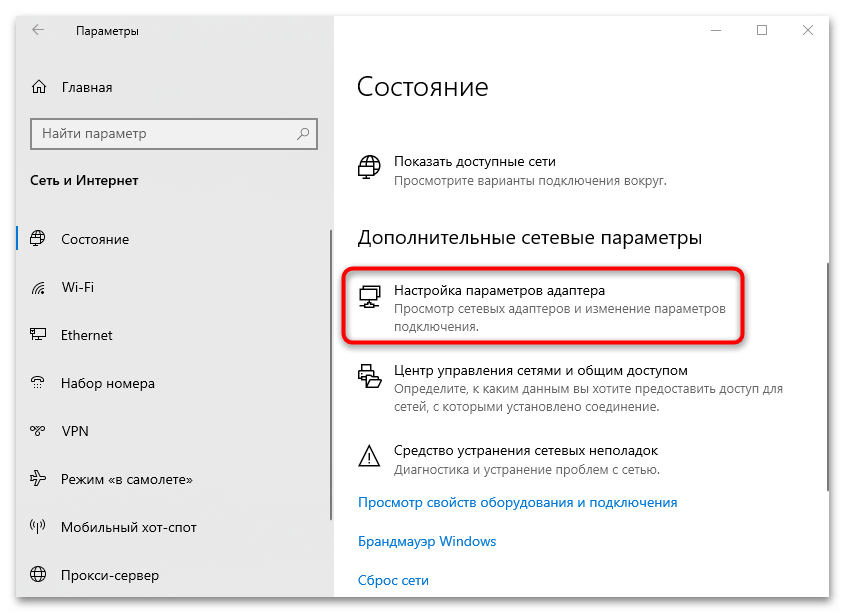 Кликните по строке «Настройки параметров адаптера» в Windows 10 или «Изменение параметров адаптера» в Windows 7.