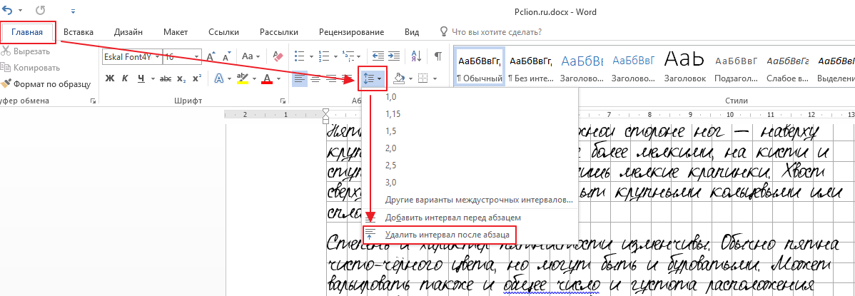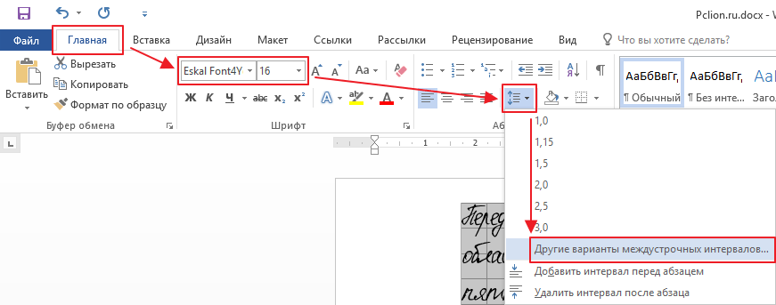 устанавливается вручную. Перейдите на вкладку Главная > Междустрочный интервал > Другие варианты междустрочных интервалов: