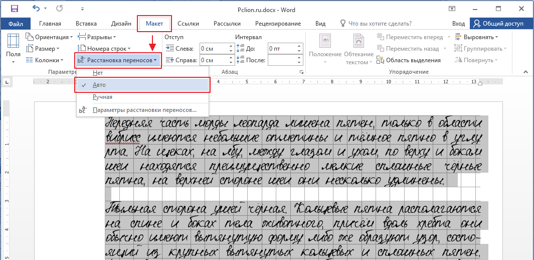 Теперь нужно отформатировать текст так, чтобы он был расположен ровно по клеткам.