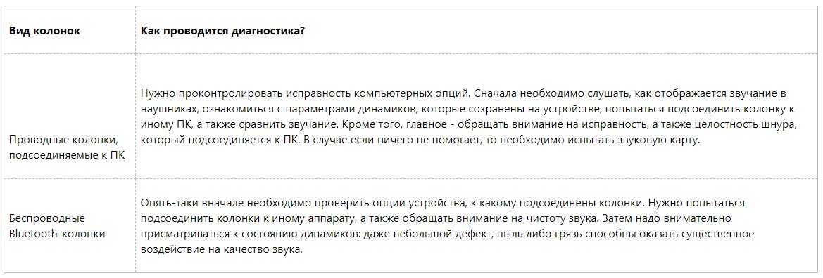 После того, как вы узнаете все детали, воздействующие на бесперебойную службу колонок, возможно, начинать проверять вероятные причинные факторы для того, чтобы отыскать, а также ликвидировать «ядро» проблемы. В зависимости от того, о каком непосредственно устройстве идет разговор, причину неисправностей необходимо находить в его свойствах.