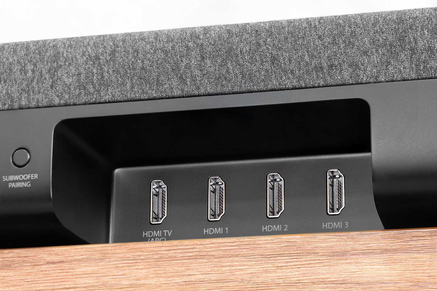 Ядром системы Citation (если вы планируете не ограничиваться моно-колонкой или стереопарой) следует считать звуковую панель Bar. Можете начать даже с одной только этой «балки» — и вы сразу получите 150-Вт акустическую систему с тремя 20-мм твитерами и шестью 100х50 мм низкочастотниками. К телевизору саундбар можно подключить с помощью трех разъемом HDMI и одного HDMI ARC с поддержкой реверсивного звукового канала.
