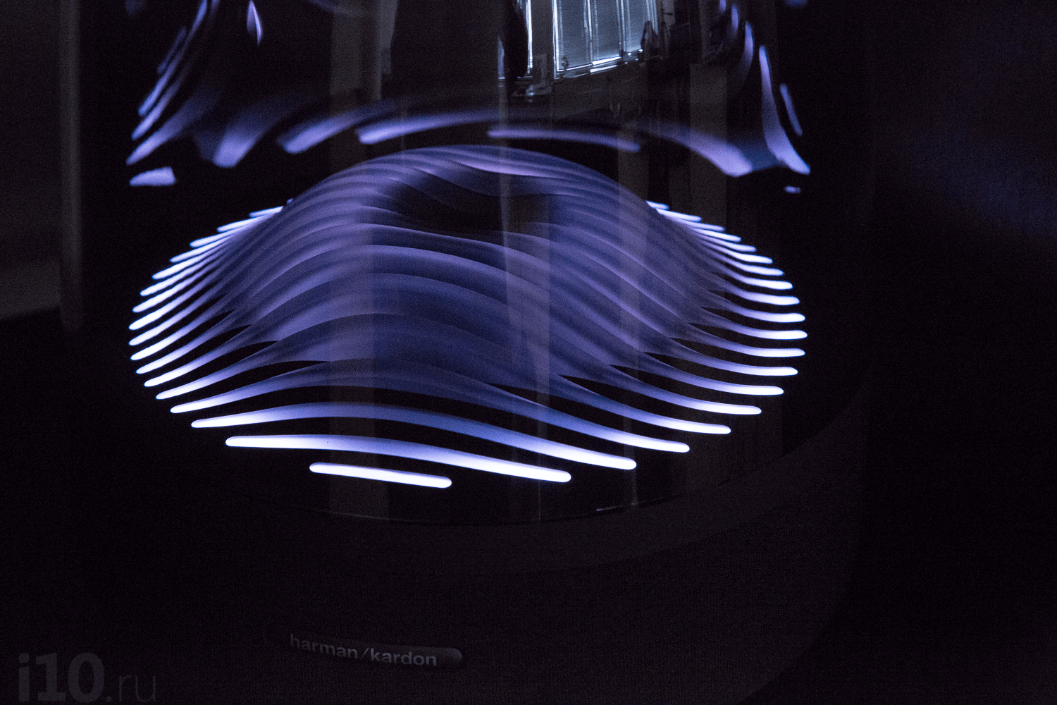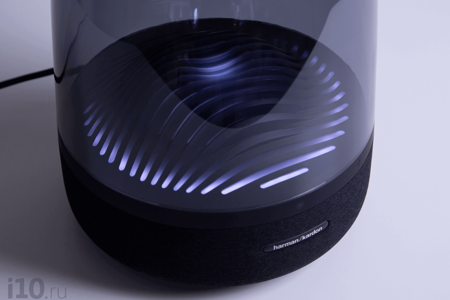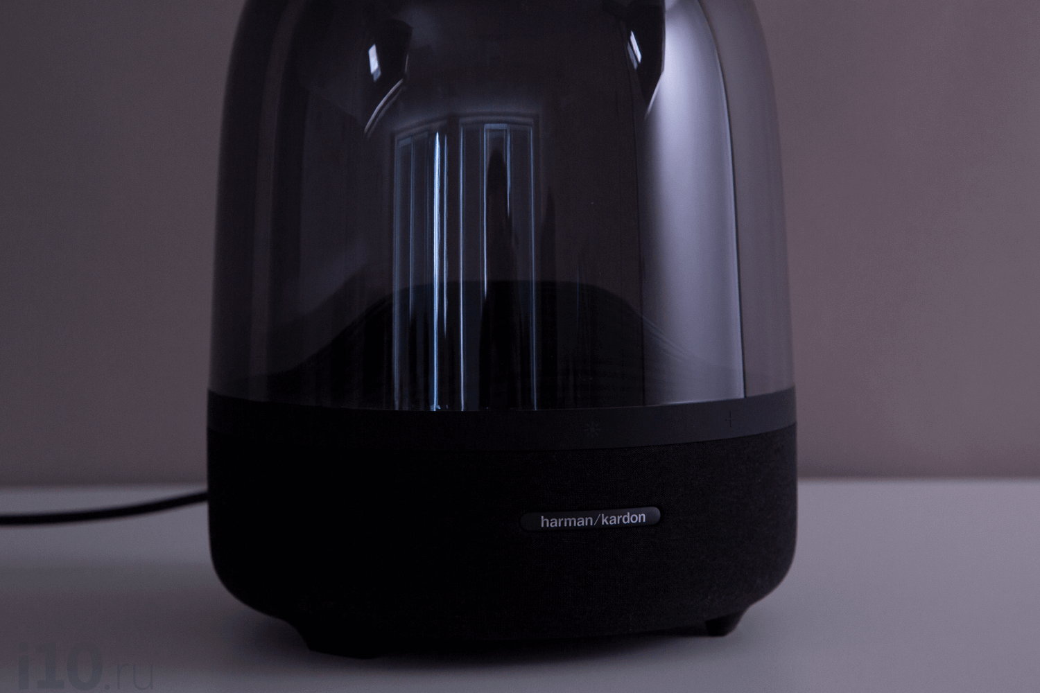 Мне кажется, если бы Apple сделала HomePod на пару лет позже, он бы выглядел именно так. Правда, внешний вид колонки от Harman Kardon можно без угрызений совести назвать эталонным, словно сам Джонатан Айв приложил руку к ее созданию. Стеклянная часть создана специально так, чтобы по-минимуму собирать отпечатки пальцев: я долго осматривал колонку, трогал ее руками, и после этого даже не пришлось протирать ее от отпечатков пальцев, как это обычно происходит.